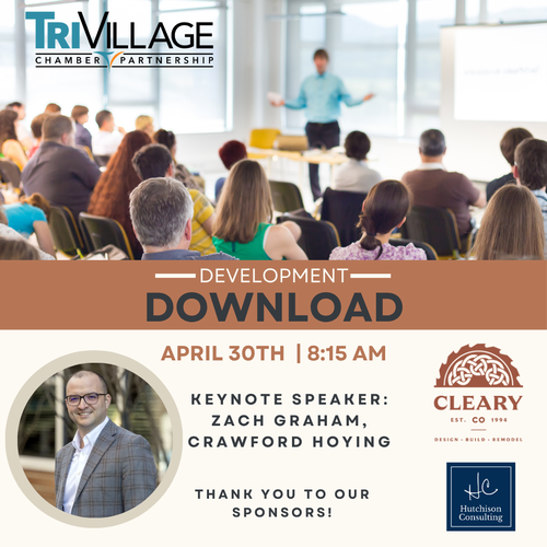 Development Download is a forum to enhance relationship-building and communication between area businesses and city officials. We are pleased to welcome Zachary Graham, Senior Vice President of Commercial Real Estate and Leasing, Crawford Hoying. (More info to come!)